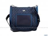 品 名:2461 GLORIA MK-LOGO字紋藍黑色PVC側肩背方包 全新品