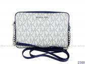 品 名:2305 MK LOGO字紋白藍色PVC側肩背方包 全新品