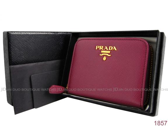 | PRADA PRADA 1857 紫紅色防刮牛皮拉鍊零錢包 全新品 |