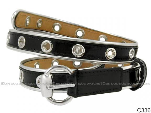 | GUCCI 古馳 C336 黑漆皮銀邊窄版皮帶 |