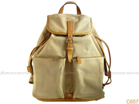| PRADA PRADA C657 駝色帆布皮革包邊束帶後背包 |