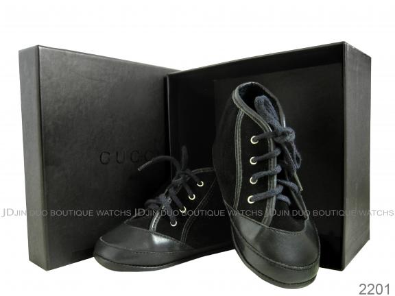 | GUCCI 古馳 2201 黑色麂皮小羊皮嬰幼兒 學步鞋 |