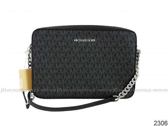 2306 MK LOGO字紋黑灰色PVC側肩背方包 全新品 |