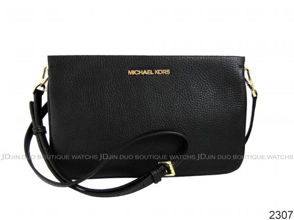 | MICHAEL KORS MICHAEL KORS 2307 MK黑色皮革紋三層式手拿側肩背小方包 全新品 |