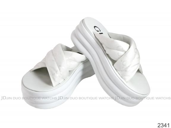 [功能] 白色厚底拖式樣款/交叉式GG-LOGO尼龍布鞋面設計/防滑白膠底/MADE IN ITALY |