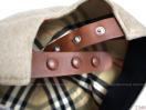 卡其色喀什米爾羊毛面料外層/棕色小牛皮帽緣與釦環/經典棉質格紋襯裡