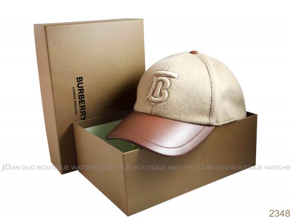 | BURBERRY 博柏利 2348 TB字母刺繡 LOGO棕色小牛皮喀什米爾羊毛棒球帽 |