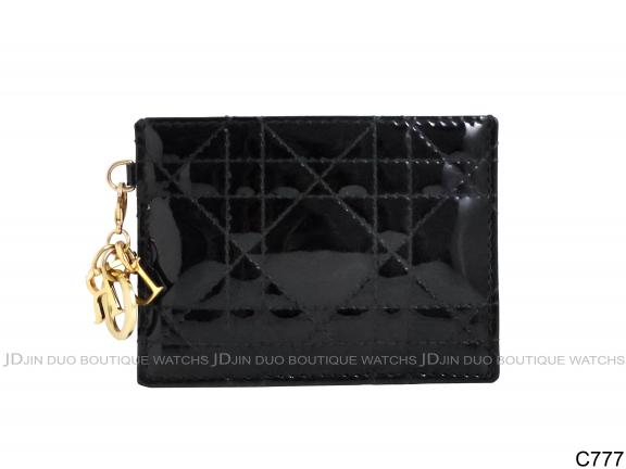C777 Lady Dior籐格紋黑色小牛皮亮漆面卡片夾 |