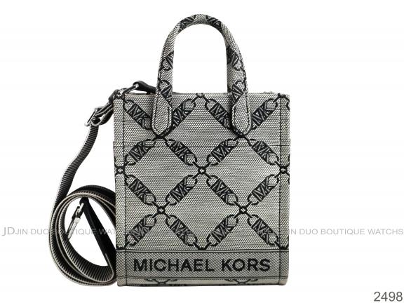[品名] MICHAEL KORS MK GIGI灰黑色緹花織布手提側肩背兩用托特包